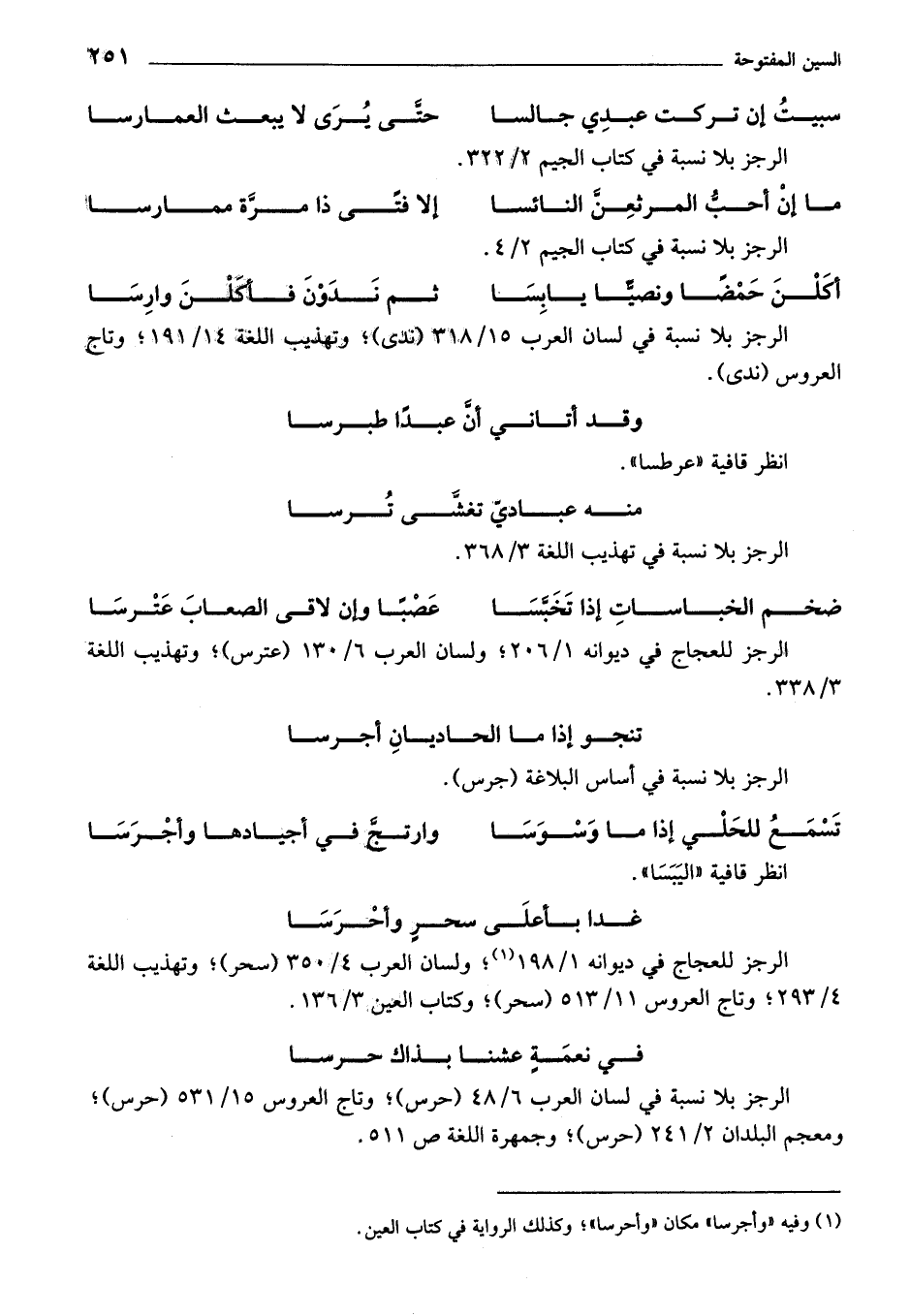 (¬1) وفيه «وأجرسا» مكان «وأحرسا»؛ وكذلك الرواية في كتاب العين.