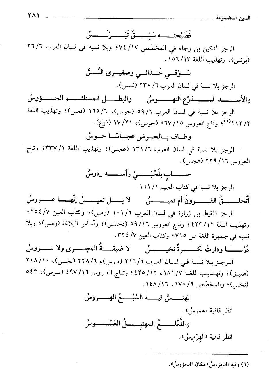 الرجز للقيط بن زرارة في لسان العرب 6/ 101 (رمس)؛ وكتاب العين 7/ 254؛ وتهذيب اللغة 12/ 423؛ وتاج العروس 16/ 59 (دختنس)؛ وأساس البلاغة (رمس)؛ وبلا نسبة في جمهرة اللغة ص 715؛ وكتاب العين 7/ 324.