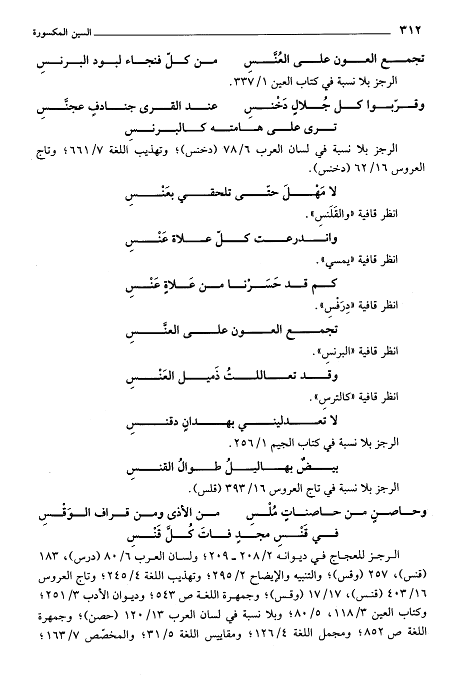 الرجز للعجاج في ديوانه 2/ 208 - 209؛ ولسان العرب 6/ 80 (درس)، 183 (قنس)، 257 (وقس)؛ والتنبيه والإيضاح 2/ 295؛ وتهذيب اللغة 4/ 245؛ وتاج العروس 16/ 403 (قنس)، 17/ 17 (وقس)؛ وجمهرة اللغة ص 543؛ وديوان الأدب 3/ 251؛ وكتاب العين 3/ 118، 5/ 80؛ وبلا نسبة في لسان العرب 13/ 120 (حصن)؛ وجمهرة اللغة ص 852؛ ومجمل اللغة 4/ 126؛ ومقاييس اللغة 5/ 31؛ والمخصص 7/ 163؛