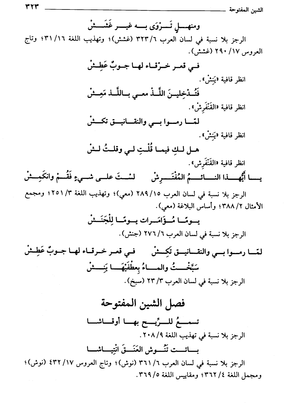 الرجز بلا نسبة في لسان العرب 6/ 361 (نوش)؛ وتاج العروس 17/ 432 (نوش)؛ ومجمل اللغة 4/ 362؛ ومقاييس اللغة 5/ 369.