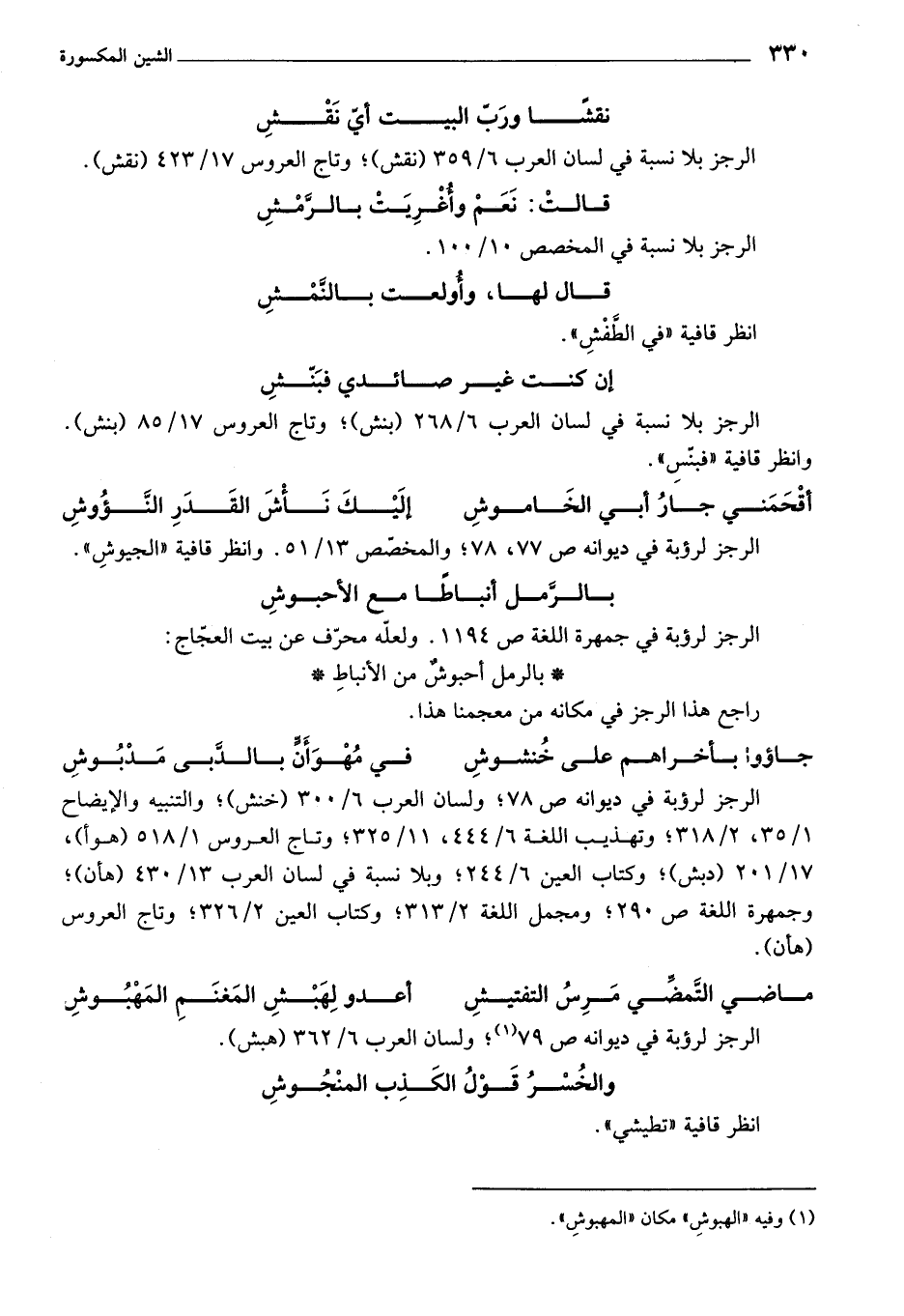 الرجز لرؤبة في ديوانه ص 78؛ ولسان العرب 6/ 300 (خنش)؛ والتنبيه والإيضاح 1/ 35، 2/ 318؛ وتهذيب اللغة 6/ 444، 11/ 325؛ وتاج العروس 1/ 518 (هوأ)، 17/ 201 (دبش)؛ وكتاب العين 6/ 244؛ وبلا نسبة في لسان العرب 13/ 430 (هأن)؛ وجمهرة اللغة ص 290؛ ومجمل اللغة 2/ 313؛ وكتاب العين 2/ 326؛ وتاج العروس (هأن).