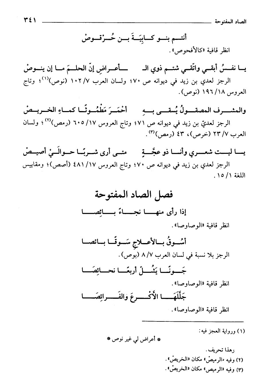 الرجز لعدي بن زيد في ديوانه ص 71؛ وتاج العروس 1/ 605 (رمص) (¬2)؛ ولسان العرب 7/ 23 (خرص)، 43 (رمص) (¬3).