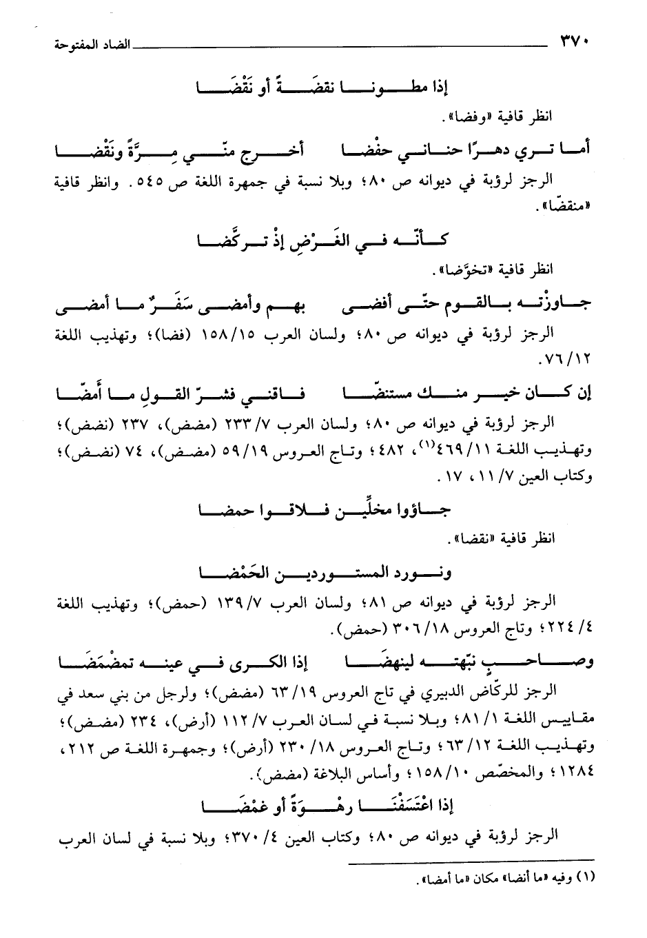 الرجز لرؤبة في ديوانه ص 80؛ ولسان العرب 7/ 233 (مضض)، 237 (نضض)، وتهذيب اللغة 11/ 469 (¬1)، 482؛ وتاج العروس 19/ 59 (مضض)، 74 (نضض)؛ وكتاب العين 7/ 11، 17.