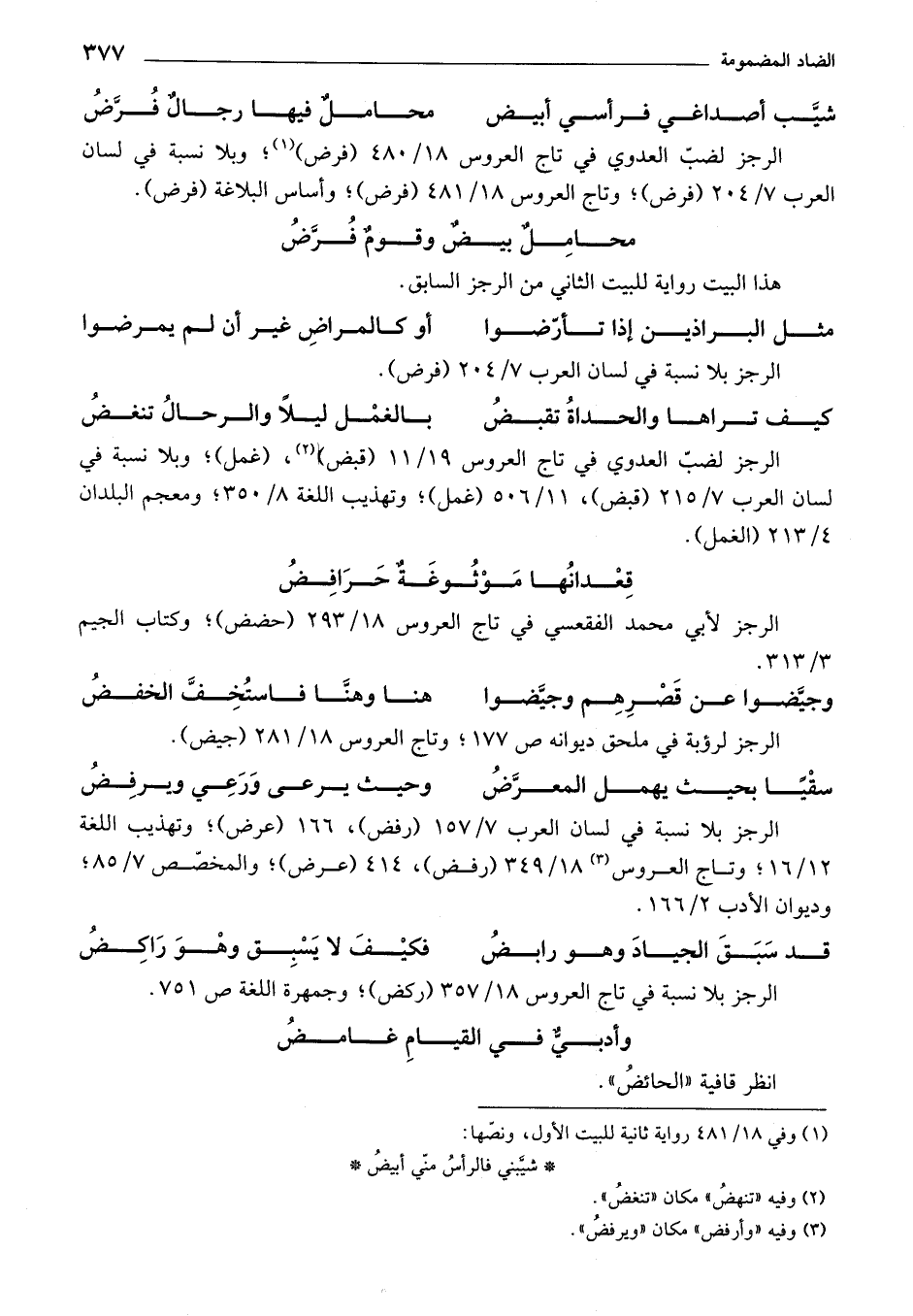 الرجز لضب العدوي في تاج العروس 18/ 480 (فرض) (¬1)؛ وبلا نسبة في لسان العرب 7/ 204 (فرض)؛ وتاج العروس 18/ 481 (فرض)؛ وأساس البلاغة (فرض).