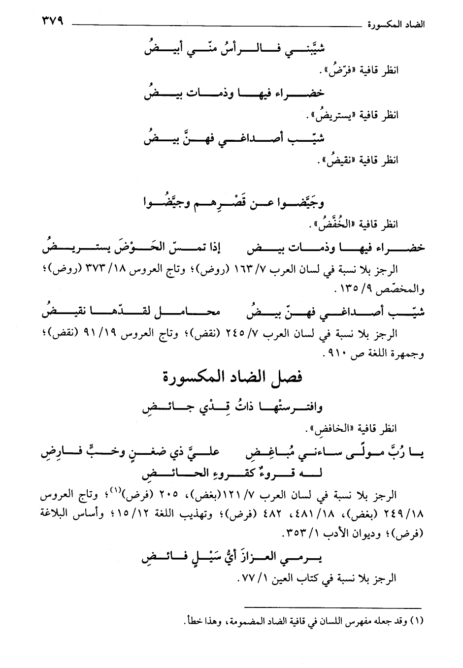 (¬1) وقد جعله مفرس اللسان في قافية الضاد المضمومة، وهذا خطأ.