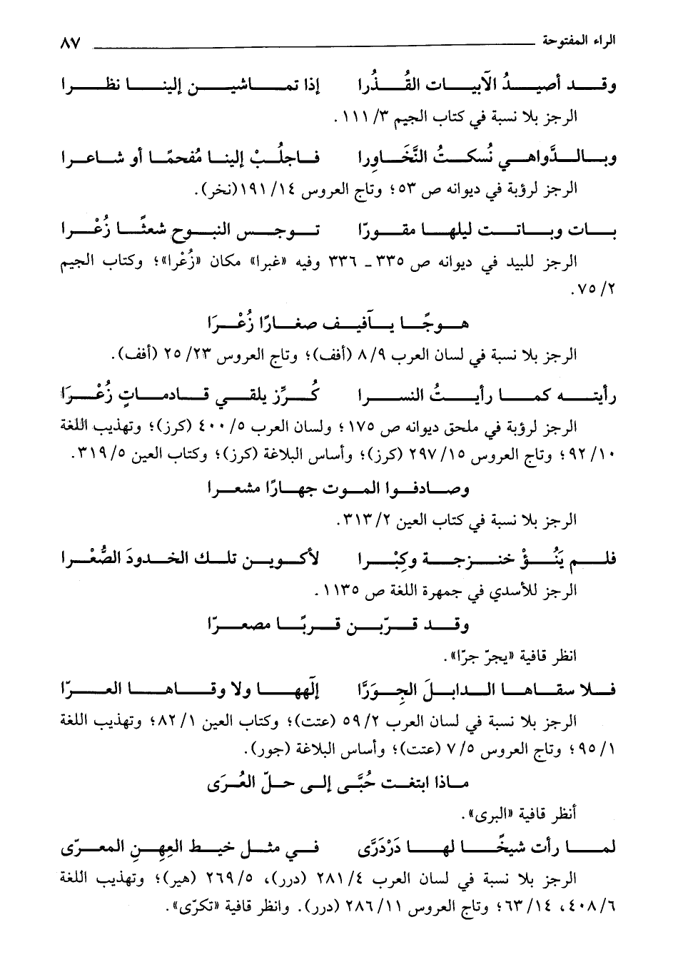الرجز للبيد في ديوانه ص 335 - 336 وفيه «غبرا» مكان «زُعْرا»؛ وكتاب الجيم 2/ 75.