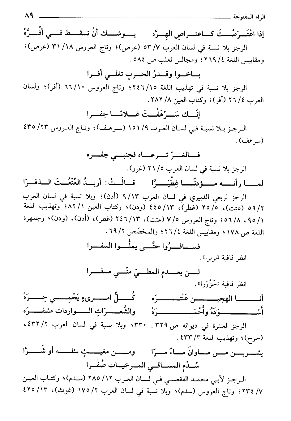 الرجز بلا نسبة في تهذيب اللغة 15/ 246؛ وتاج العروس 10/ 66 (أفر)؛ ولسان العرب 4/ 26 (أفر)؛ وكتاب العين 8/ 282.