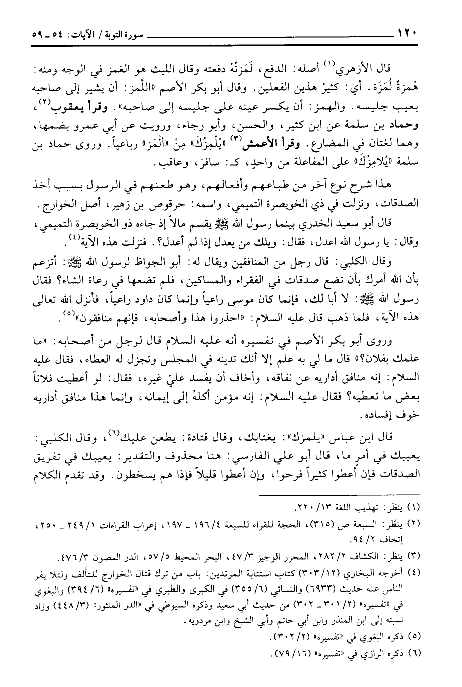 هذا شرح نوع آخر من طباعهم وأفعالهم، وهو طعنهم في الرسول بسبب أخذ الصدقات، ونزلت في ذي الخويصرة التميمي، واسمه: حرقوص بن زهير، أصل الخوارج.