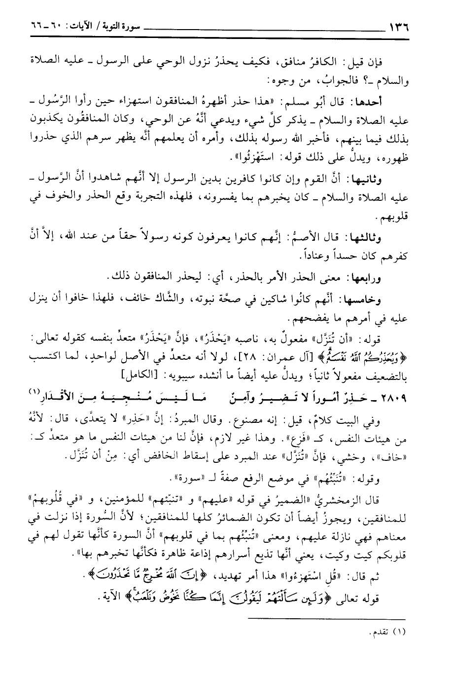 فإن قيل: الكافرُ منافق، فكيف يحذرُ نزول الوحي على الرسول - عَلَيْهِ الصَّلَاة وَالسَّلَام ُ -؟ فالجوابُ، من وجوه: