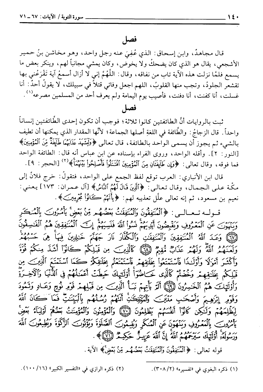 ثبت بالروايات أنَّ الطائفتين كانوا ثلاثة؛ فوجب أن تكون إحدى الطَّائفتين إنساناً واحداً. قال الزجاجُ: والطَّائفة في اللغةِ أصلها الجماعة؛ لأنَّها المقدار الذي يمكنها أن تطيف بالشيء ثم يجوز أن يسمى الواحد بالطائفة، قال تعالى {وَلْيَشْهَدْ عَذَابَهُمَا طَآئِفَةٌ مِّنَ المؤمنين} [النور: 2] . وأقله الواحد، وروى الفراء بإسناده عن ابن عباس أنه قال: الطائفة الواحد فما فوقه، وقال تعالى: {وَإِن طَآئِفَتَانِ مِنَ المؤمنين اقتتلوا فَأَصْلِحُواْ بَيْنَهُمَا} [الحجر: 9] .