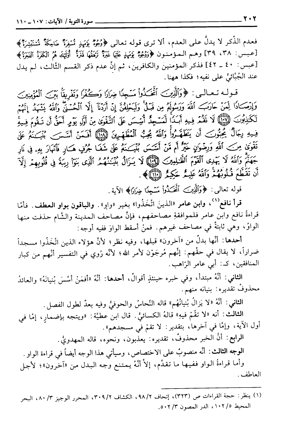 الثالث: أنه «لا تقُمْ فيهِ» قالهُ الكسائيُّ. قال ابن عطيَّة: «ويتجه بإضمارٍ، إمَّا في أول الآية، وإمَّا في آخرها، بتقدير: لا تقمْ في مسجدهم» .