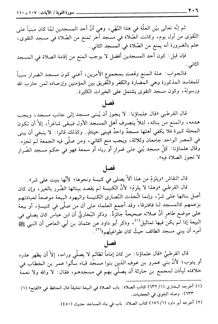 فالجواب: علة المنع وقعت بمجموع الأمرين، أعني كون مسجد الضرار سبباً للمفاسد المذكورة وهي المضارة والكفر والتَّفريق بين المؤمنين وإرصاده لمن حارب الله ورسولهُ، وكون مسجد التقوى يشتمل على الخيرات الكثيرة.