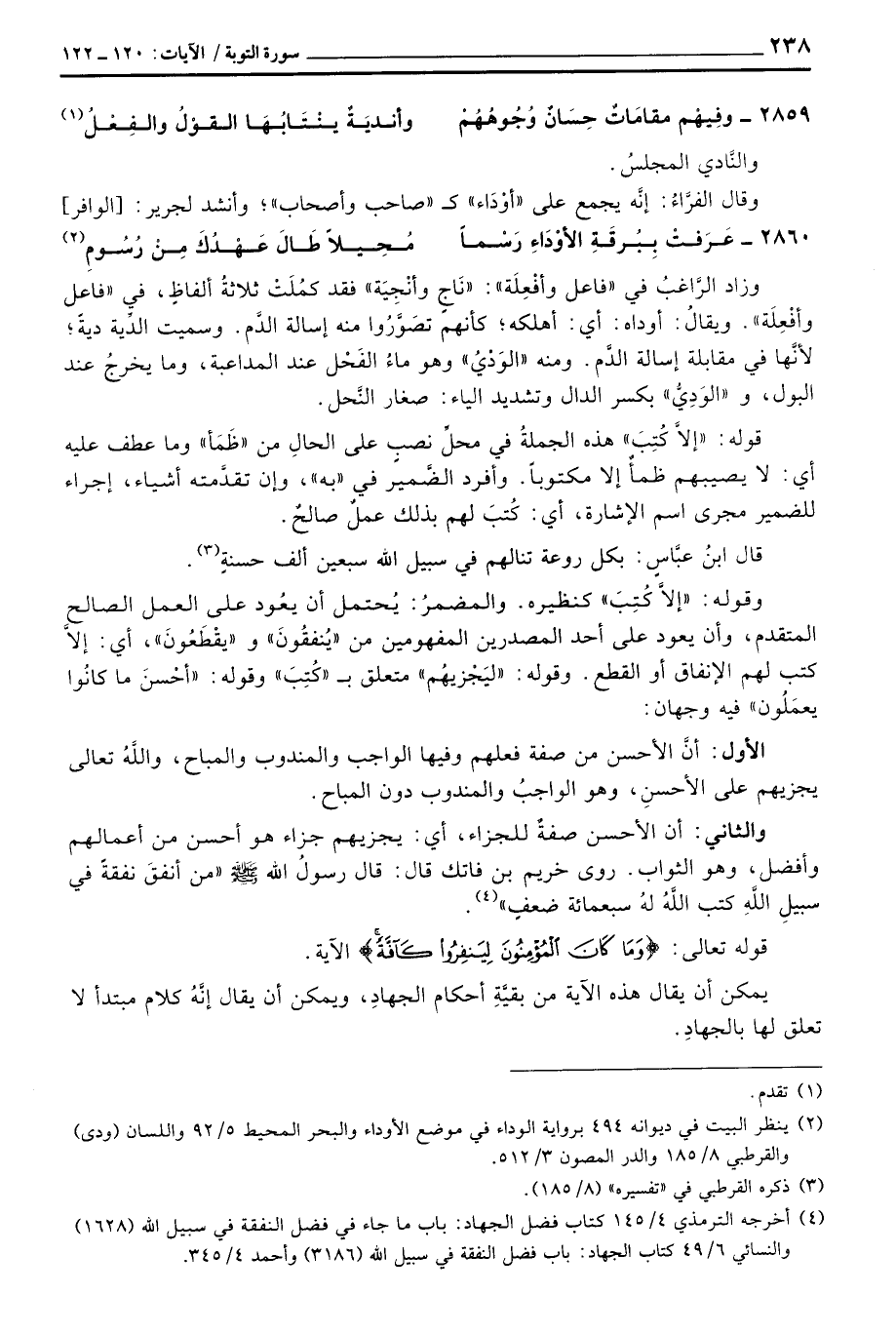 وقوله: «إِلاَّ كُتِبَ» كنظيره. يُحتمل أن يعُود على العمل الصالح المتقدم، وأن يعود على أحد المصدرين المفهومين من «يُنفقُونَ» و «يقْطَعُونَ» ، أي: إلاَّ كتب لهم الإنفاق أو القطع. وقوله: «ليَجْزيهُم» متعلق ب «كُتِبَ» وقوله: {أَحْسَنَ مَا كَانُواْ يَعْمَلُونَ} فيه وجهان: