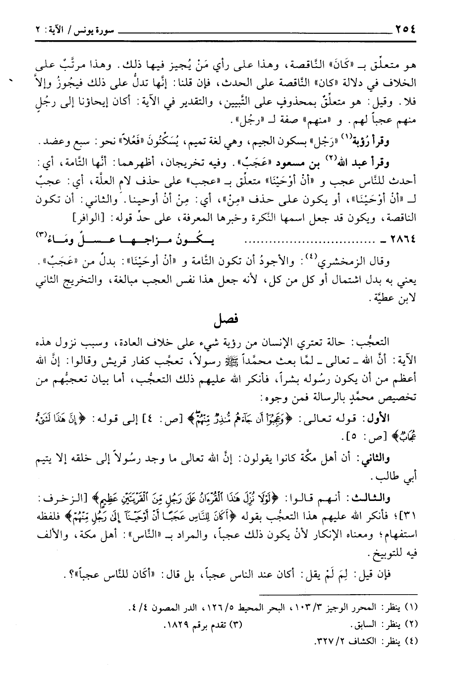 التعجُّب: حالة تعتري الإنسان من رؤية شيء على خلاف العادة، وسبب نزول هذه الآية: أنَّ الله - تعالى - لمَّا بعث محمَّداً صَلَّى اللَّهُ عَلَيْهِ وَسَلَّم َ رسولاً، تعجَّب كفار قريش وقالوا: إنَّ الله أعظم من أن يكون رسُوله بشراً، فأنكر الله عليهم ذلك التعجُّب، أما بيان تعجُّبهم من تخصيص محمَّدٍ بالرسالة فمن وجوه: