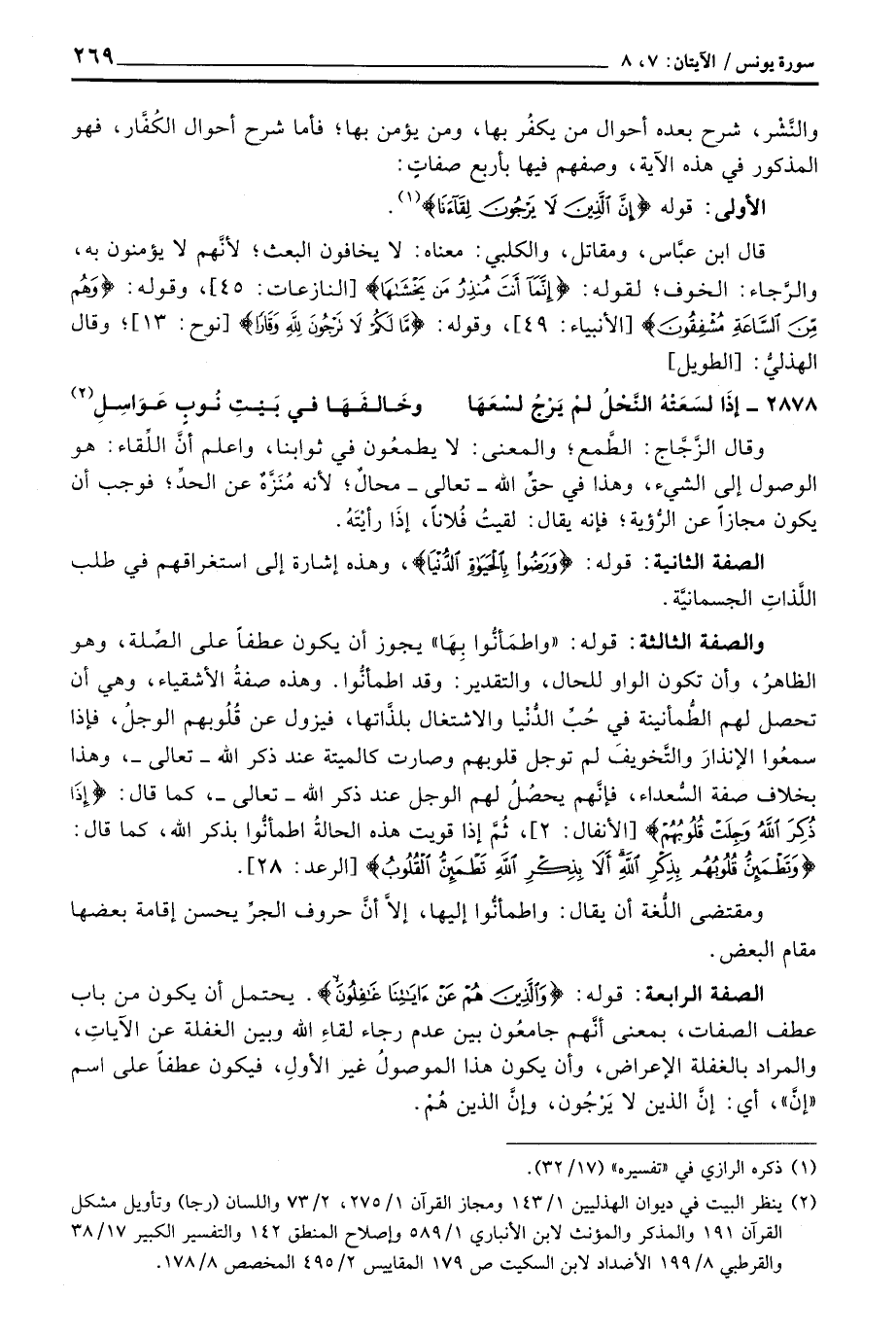 الأولى: قوله: {إَنَّ الذين لاَ يَرْجُونَ لِقَآءَنَا} .