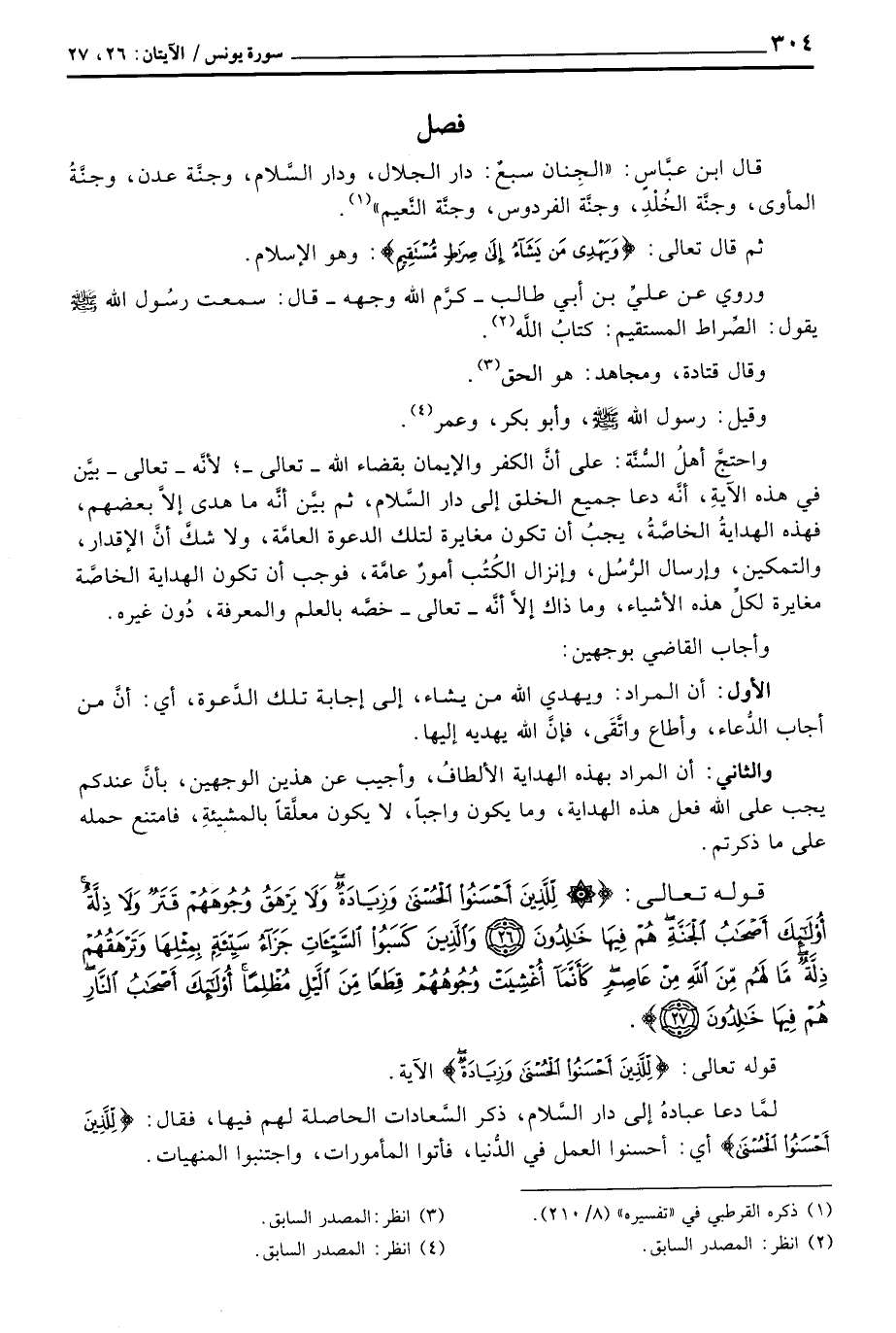 واحتجَّ أهلُ السُّنَّة: على أنَّ الكفر والإيمان بقضاء الله - تعالى -؛ لأنَّه - تعالى - بيَّن في هذه الآيةِ، أنَّه دعا جميع الخلق إلى دارالسَّلام، ثم بيَّن أنَّه ما هدى إلاَّ بعضهم، فهذه الهدايةُ الخاصَّةُ، يجبُ أن تكون مغايرة لتلك الدعوة العامَّة، ولا شكَّ أنَّ الإقدار، والتمكين، وإرسال الرُّسُل، وإنزال الكُتُب أمورٌ عامَّة، فوجب أن تكون الهداية الخاصَّة مغايرة لكلِّ هذه الأشياء، وما ذاك إلاَّ أنَّه - تعالى - خصَّه بالعلم والمعرفة، دُون غيره.
