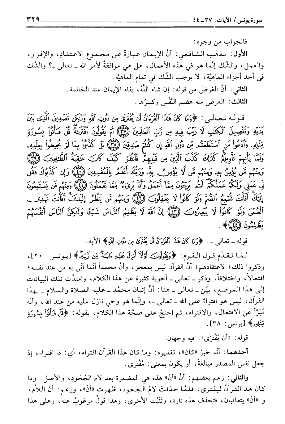 قوله - تعالى -: {وَمَا كَانَ هذا القرآن أَن يفترى مِن دُونِ الله} الآية.