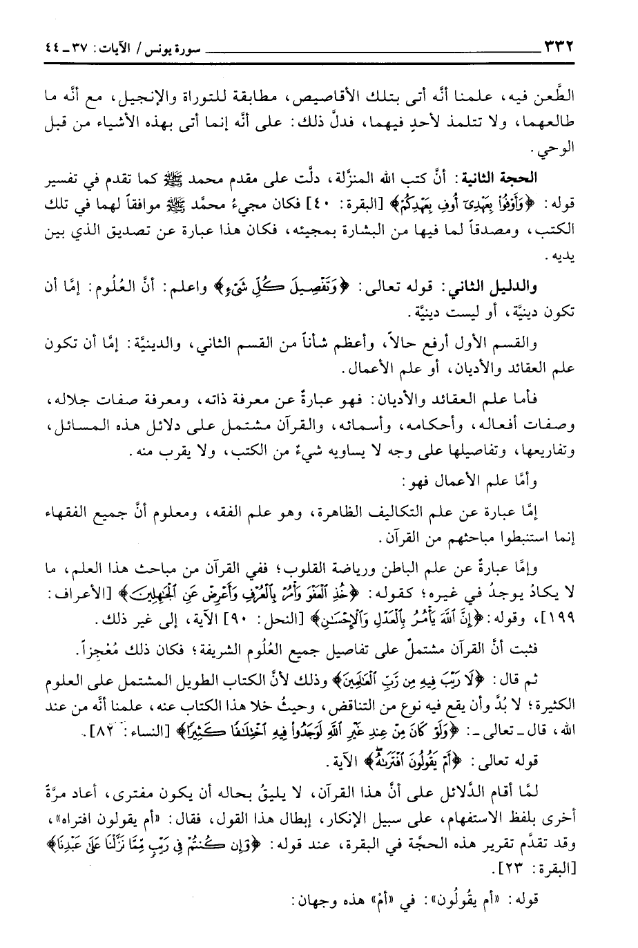 فثبت أنَّ القرآن مشتملٌ على تفاصيل جميع العُلُوم الشريفة؛ فكان ذلك مُعْجِزاً.