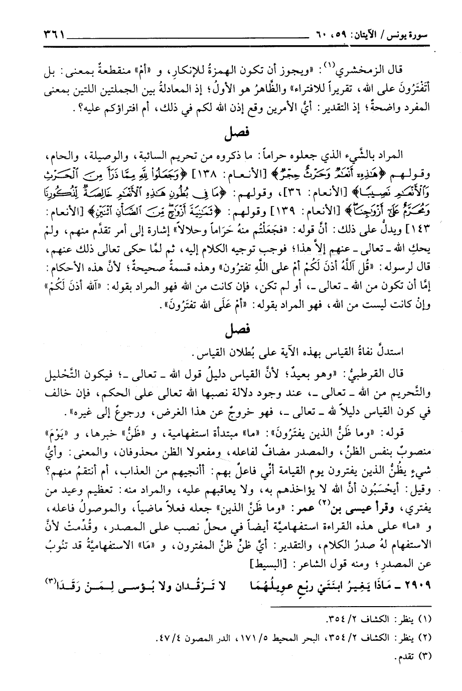المراد بالشَّيء الذي جعلوه حراماً: ما ذكروه من تحريم السائبة، والوصيلة، والحام، وقولهم {هذه أَنْعَامٌ وَحَرْثٌ حِجْرٌ} [الأنعام: 138] {وَجَعَلُواْ للَّهِ مِمَّا ذَرَأَ مِنَ الحرث والأنعام نَصِيباً} [الأنعام: 36] ، وقولهم: {مَا فِي بُطُونِ هذه الأنعام خَالِصَةٌ لِّذُكُورِنَا وَمُحَرَّمٌ على أَزْوَاجِنَا} [الأنعام: 139] وقولهم: {ثَمَانِيَةَ أَزْوَاجٍ مَّنَ الضأن اثنين} [الأنعام: 143] ويدلُّ على ذلك: أنَّ قوله: {فَجَعَلْتُمْ مِّنْهُ حَرَاماً وَحَلاَلاً} إشارة إلى أمر تقدَّم منهم، ولمْ يحكِ الله - تعالى - عنهم إلاَّ هذا؛ فوجب توجيه الكلام إليه، ثم لمَّا حكى تعالى ذلك عنهم، قال لرسوله: {قُلْءَآللَّهُ أَذِنَ لَكُمْ أَمْ عَلَى الله تَفْتَرُونَ} وهذه قسمةٌ صحيحةٌ؛ لأنَّ هذه الأحكام: إمَّا أن تكون من الله - تعالى -، أو لم تكن، فإن كانت من الله فهو المراد بقوله: {ءَآللَّهُ أَذِنَ لَكُمْ} وإنْ كانت ليست من الله، فهو المراد بقوله: {أَمْ عَلَى الله تَفْتَرُونَ} .