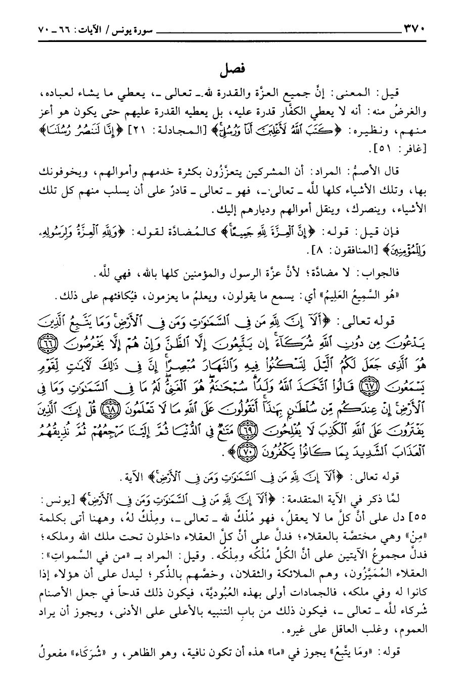 قيل: المعنى: إنَّ جميع العزَّة والقدرة لله - تعالى -، يعطي ما يشاء لعباده، والغرضُ منه: أنه لا يعطي الكفَّار قدرة عليه، بل يعطيه القدرة عليهم حتى يكون هو أعز منهم، ونظيره: {كَتَبَ الله لأَغْلِبَنَّ أَنَاْ ورسلي} [المجادلة: 21] {إِنَّا لَنَنصُرُ رُسُلَنَا} [غافر: 51] .