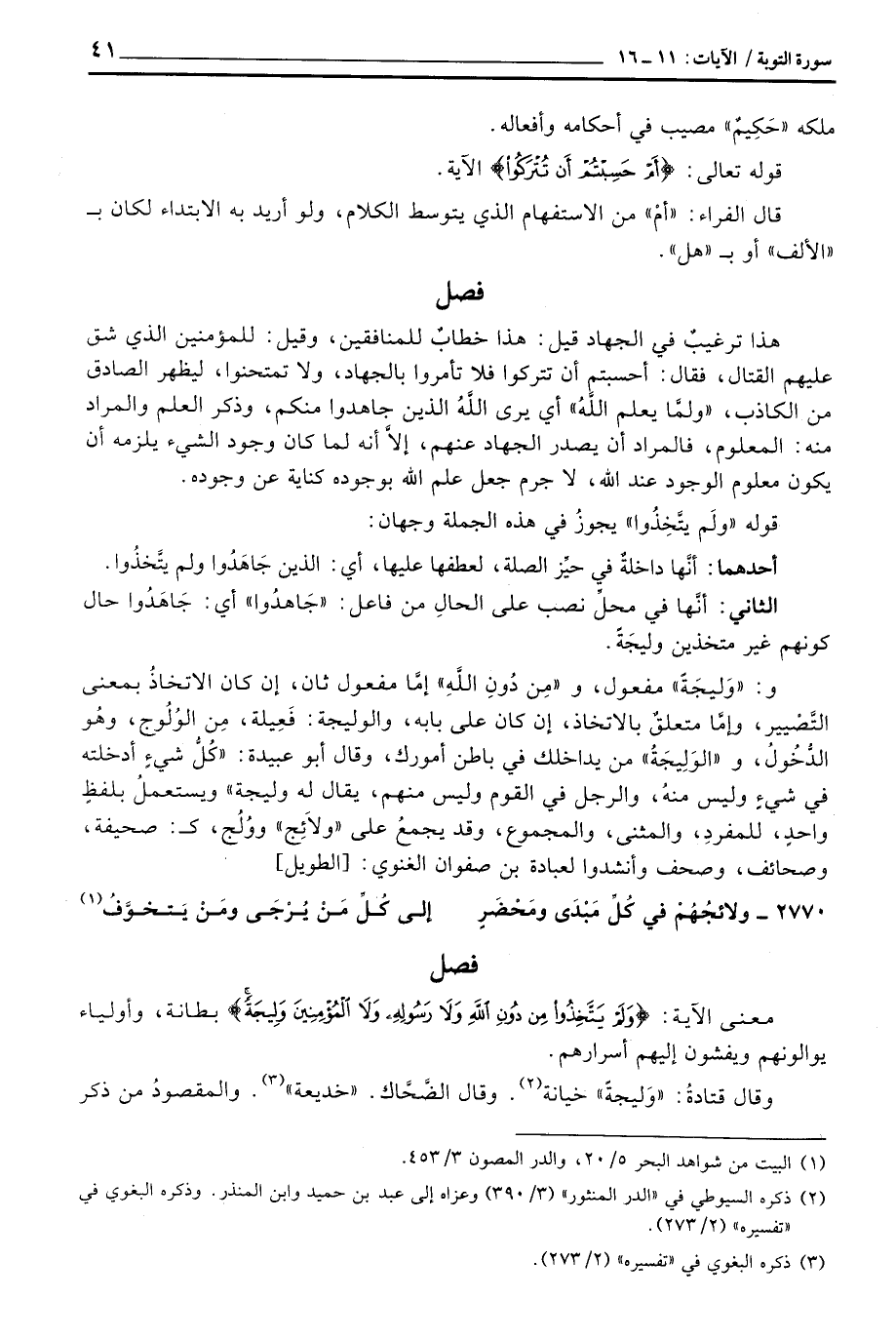 معنى الآية: {وَلَمْ يَتَّخِذُواْ مِن دُونِ الله وَلاَ رَسُولِهِ وَلاَ المؤمنين وَلِيجَةً} بطانة، وأولياء يوالونهم ويفشون إليهم أسرارهم.
