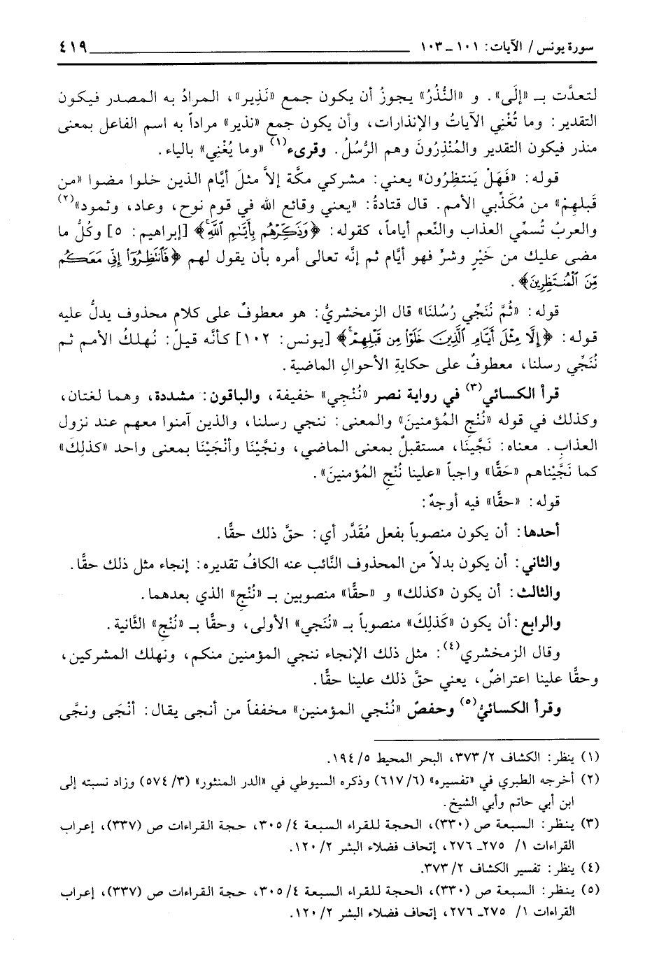 والرابع: أن يكون «كَذلِكَ» منصوباً ب «نُنَجي» الاولى، وحقّاً ب «نُنْجِ» الثَّانية.