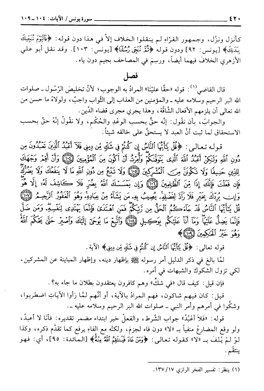 قال القاضي: قوله «حقًّا عليْنَا» المرادث به الوجوب؛ لأنَّ تخليصَ الرَّسُول - صلوات الله البر الرحيم وسلامه عليه - والمؤمنين من العذاب إلى الثَّواب واجبٌ، ولولاهُ ما حسن من الله تعالى أن يلزمهم الأفعال الشَّاقَّة، وهذا يجري مجرى قضاء الدَّين.