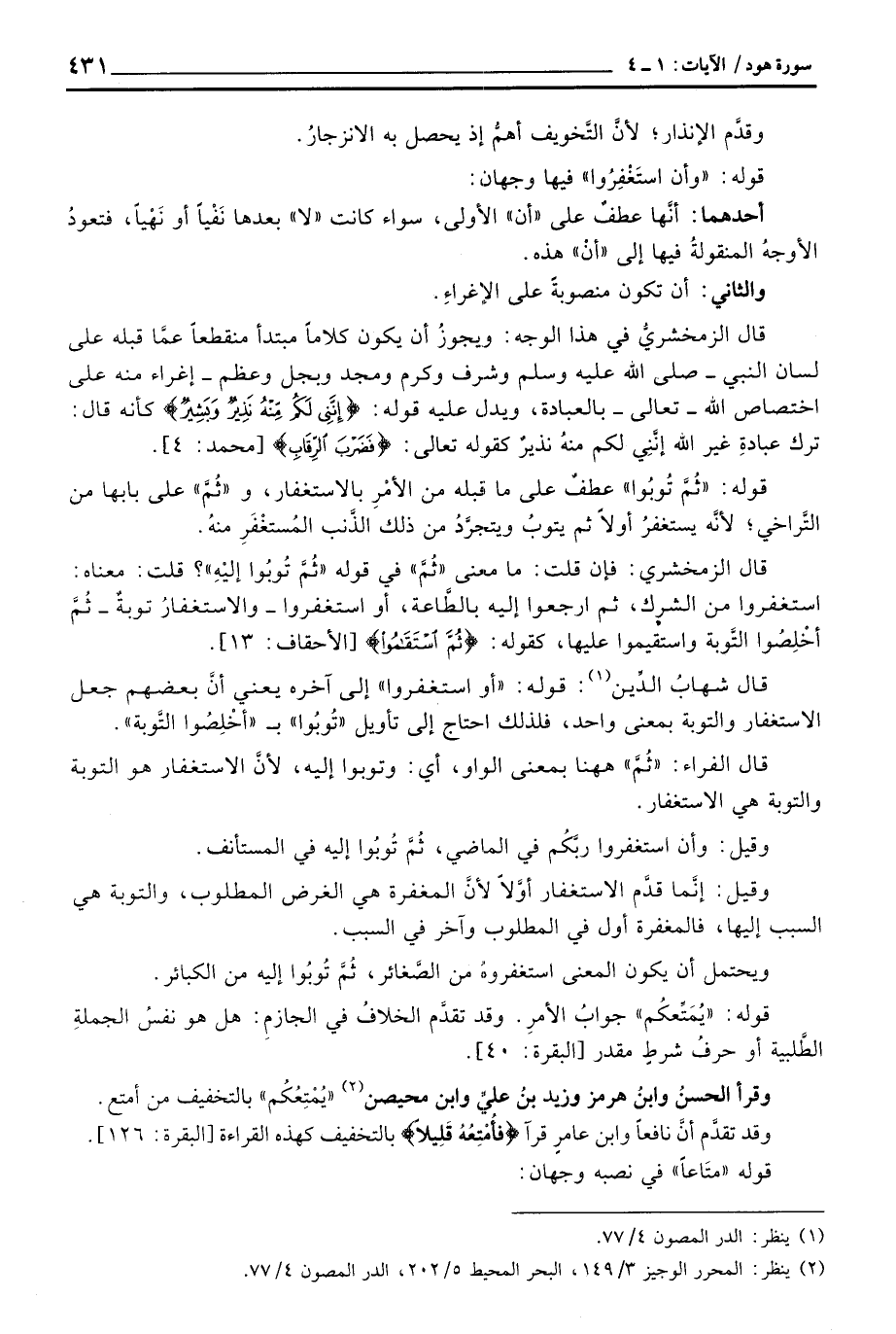 قال شهابُ الدِّين: قوله: «أو استغفروا» إلى آخره يعني أنَّ بعضهم جعل الاستغفار والتوبة بمعنى واحد، فلذلك احتاج إلى تأويل «تُوبُوا» ب «أخْلِصُوا التَّوبة» .
