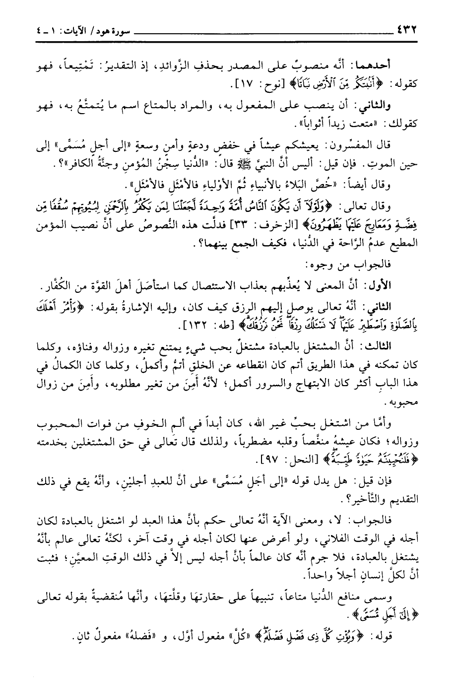 قال المفسِّرون: يعيشكم عيشاً في خفضٍ ودعةٍ وأمنٍ وسعةٍ «إلى أجلٍ مُسَمًّى» إلى حين الموتِ. فإن قيل: أليس أنَّ النبيَّ صَلَّى اللَّهُ عَلَيْهِ وَسَلَّم َ قال: «الدُّنيا سِجْنُ المُؤمنِ وجنَّةُ الكافر»