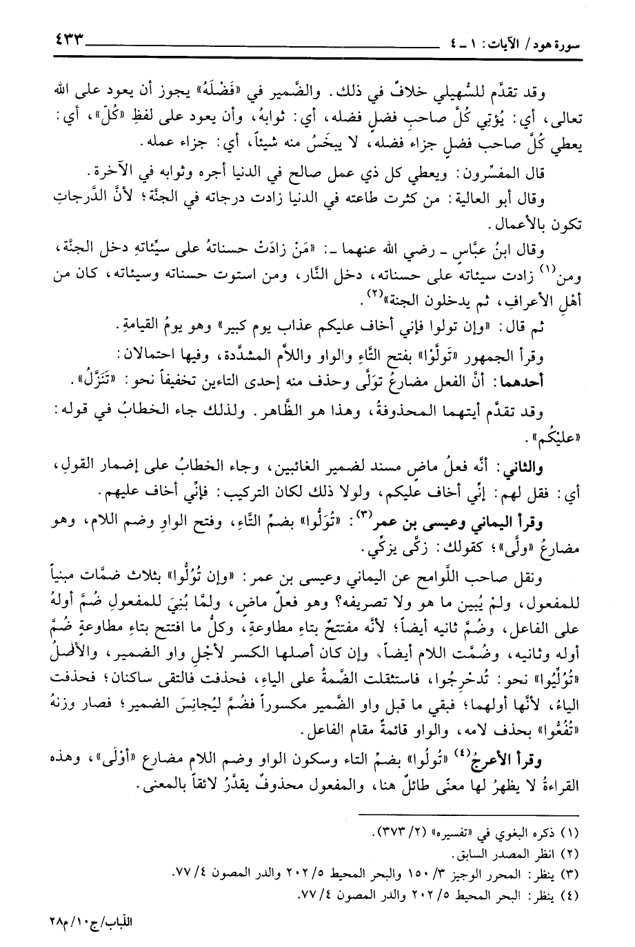 وقد تقدَّم للسُّهيلي خلافٌ في ذلك. والضَّمير في «فَضْلَهُ» يجوز أن يعود على الله تعالى، أي: يُؤتِي كُلَّ صاحبِ فضلٍ فضله، أي: ثوابهُ، وأن يعود على لفظِ «كُلّ» ، أي: يعطي كُلَّ صاحب فضلٍ جزاء فضله، لا يبخَسُ منه شيئاً، أي: جزاء عمله.