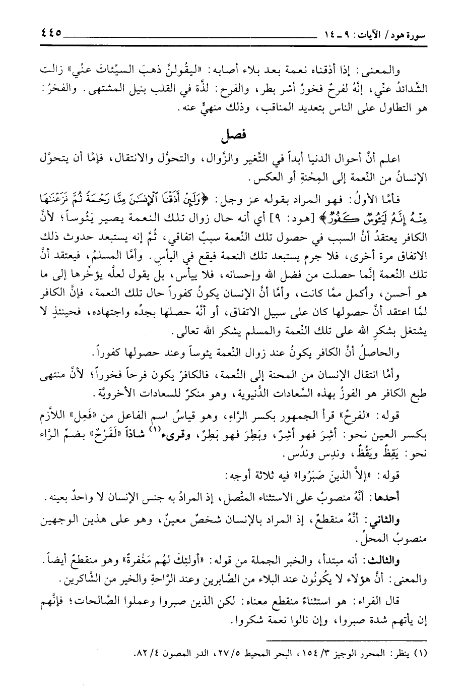وأمَّا انتقال الإنسان من المحنة إلى النِّعمة، فالكافرُ يكون فرحاً فخوراً؛ لأنَّ منتهى طبع الكافر هو الفوزُ بهذه السَّعادات الدُّنيوية، وهو منكرٌ للسعادات الأخرويَّة.