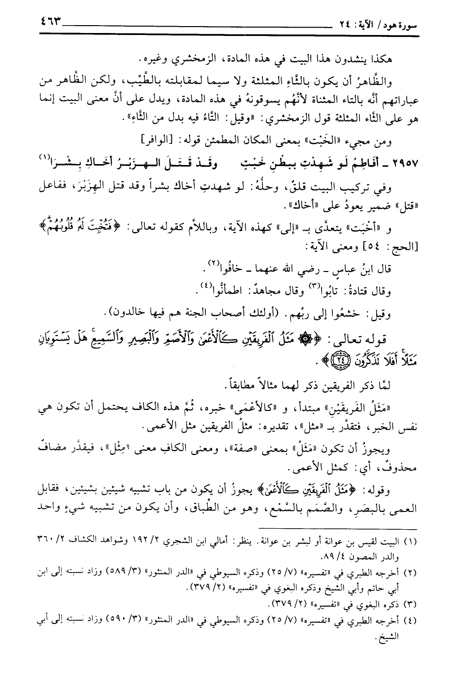 وفي تركيب البيت قلقٌ، وحلُّهُ: لو شهدتِ أخاك بشراً وقد قتل الهِزَبْرَ، ففاعل «قتل» ضمير يعودُ على «أخاك» .