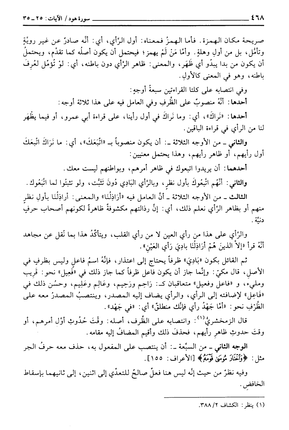 والثاني - من الأوجه الثلاثة -: أن يكون منصوباً ب «اتَّبَعَكَ» ، أي: ما نَرَاكَ اتَّبعَكَ أول رأيهم، أو ظاهر رأيهم، وهذا يحتمل معنيين: