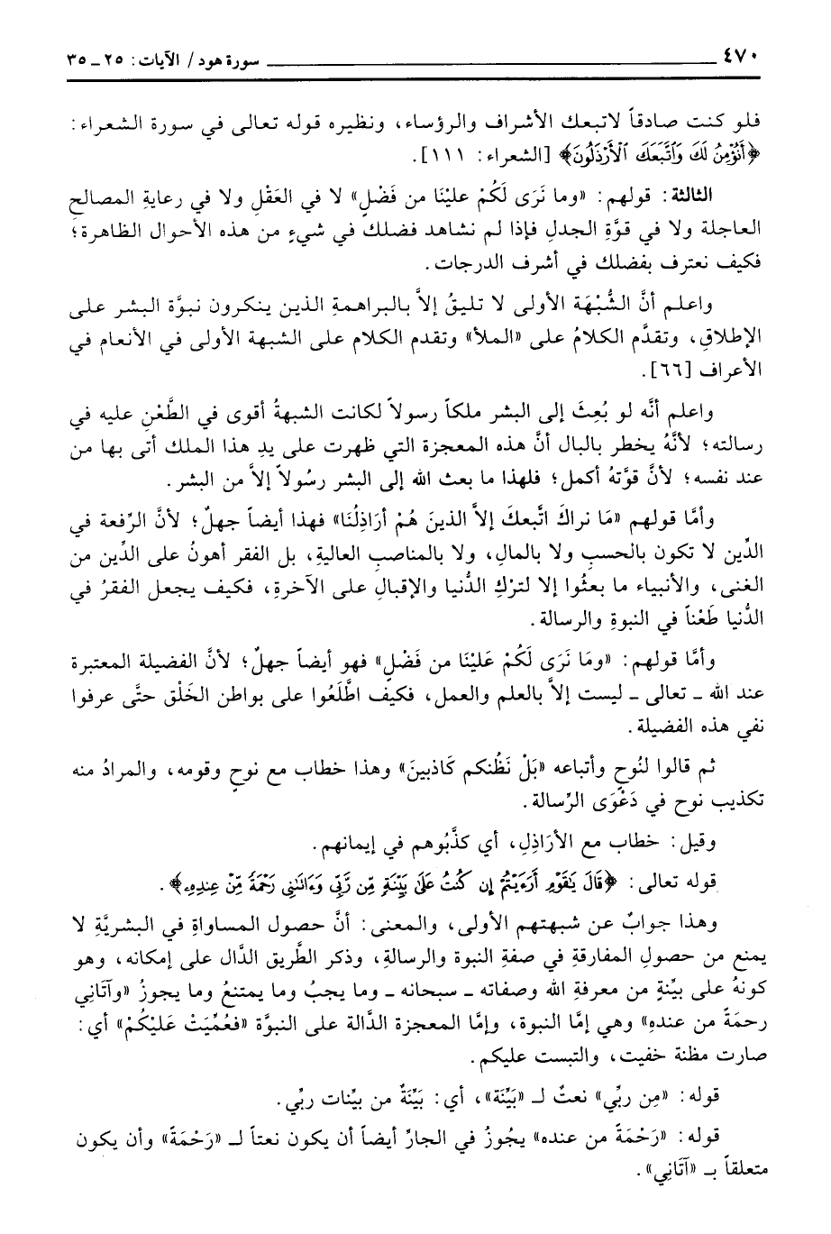 واعلم أنَّ الشُّبْهَة الأولى لا تليقُ إلاَّ بالبراهمةِ الذين ينكرون نبوَّة البشر على الإطلاقِ، وتقدَّم الكلامُ على «الملأ» وتقدم الكلام على الشبهة الأولى في الأنعام في الأعراف [66] .