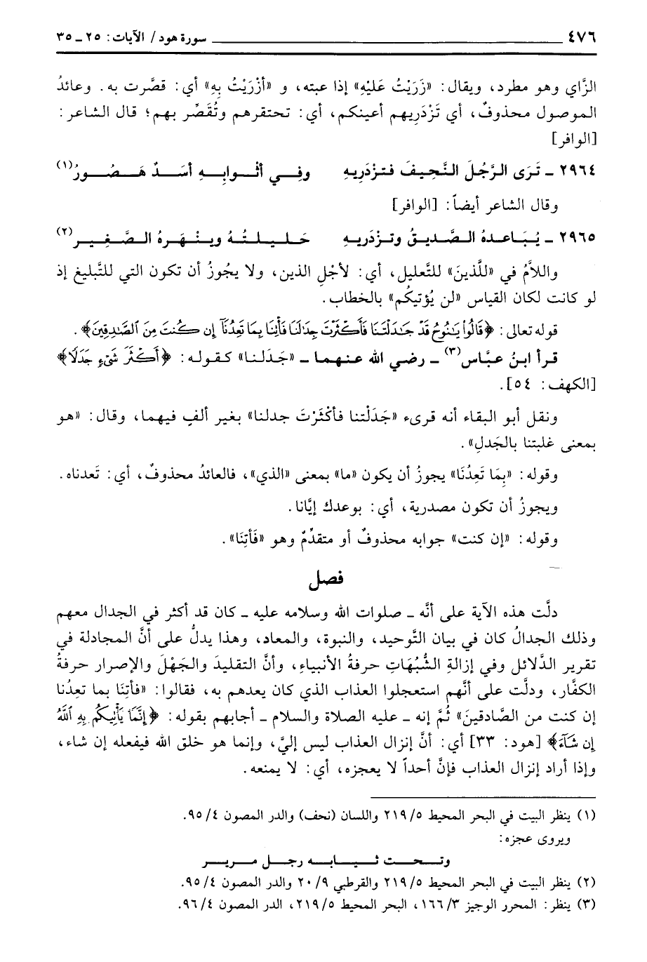 دلَّت هذه الآية على أنَّه - صلوات الله وسلامه عليه - كان قد أكثر في الجدال معهم وذلك الجدالُ كان في بيان التَّوحيد، والنبوة، والمعاد، وهذا يدلُّ على أنَّ المجادلة في تقرير الدَّلائل وفي إزالةِ الشُّبُهاتِ حرفةُ الأنبياءِ، وأنَّ التقليدَ والجَهْلَ والإصرار حرفةُ الكفَّار، ودلَّت على أنَّهم استعجلوا العذاب الذي كان يعدهم به، فقالوا: {فَأْتَنِا بِمَا تَعِدُنَآ إِن كُنتَ مِنَ الصادقين} ثُمَّ إنه - عَلَيْهِ الصَّلَاة وَالسَّلَام ُ - أجابهم بقوله: