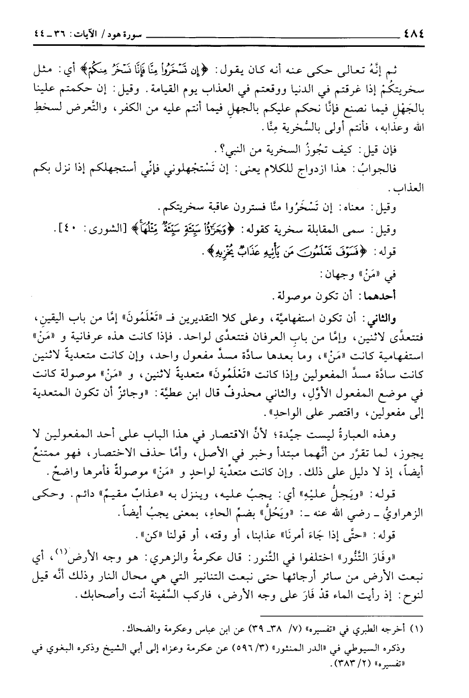 {وَفَارَ التنور} اختلفوا في التَّنور: قال عكرمةُ والزهري: هو وجه الأرض، أي نبعث الأرض من سائر أرجائها حتى نبعث التنانير التي هي محال النار وذلك أنَّه قيل لنوح: إذ رأيت الماء قدْ فَارَ على وجه الأرض، فاركب السَّفينة أنت وأصحابك.