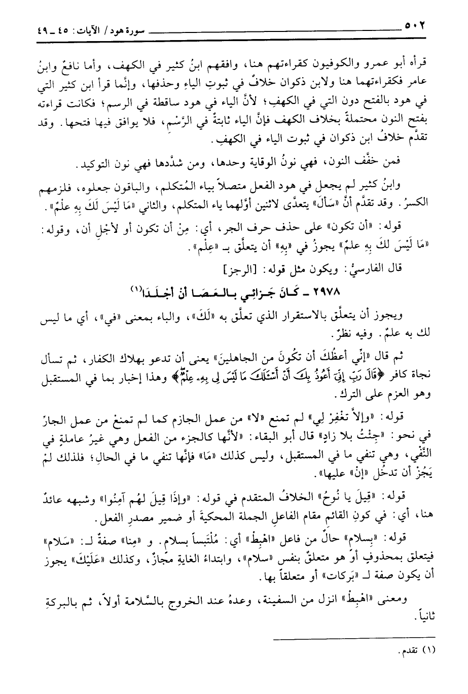 ثم قال: {إني أَعِظُكَ أَن تَكُونَ مِنَ الجاهلين} يعني أن تدعو بهلاك الكفار، ثم تسأل نجاة كافر {قَالَ رَبِّ إني أَعُوذُ بِكَ أَنْ أَسْأَلَكَ مَا لَيْسَ لِي بِهِ عِلْمٌ} وهذا إخبار بما في المستقبل وهو العزم على الترك.