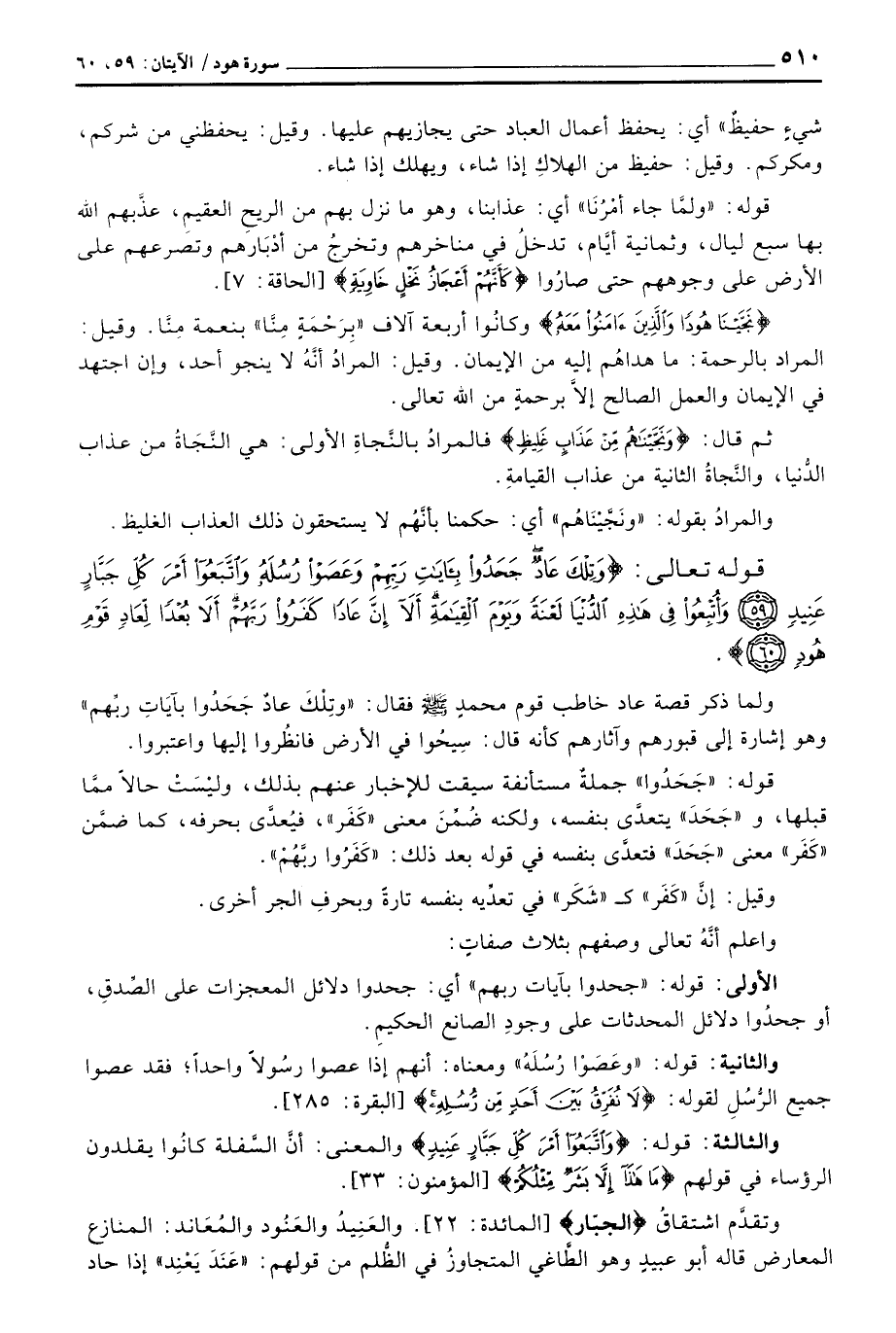 ولما ذكر قصة عاد خاطب قوم محمدٍ صَلَّى اللَّهُ عَلَيْهِ وَسَلَّم َ فقال: {وَتِلْكَ عَادٌ جَحَدُواْ بِآيَاتِ رَبِّهِمْ} وهو إشارة إلى قبورهم وآثارهم كأنه قال: سِيحُوا في الأرض فانظرُوا إليها واعتبروا.
