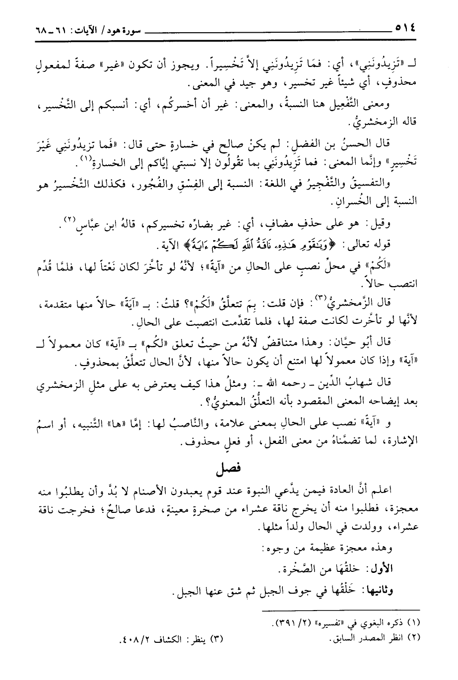 قال الحسنُ بن الفضلِ: لم يكنْ صالح في خسارةٍ حتى قال: {فَمَا تَزِيدُونَنِي غَيْرَ تَخْسِيرٍ} وإنَّما المعنى: فما تَزِيدُونَنِي بما تقُولُون إلا نسبتي إيَّاكم إلى الخسارةِ.