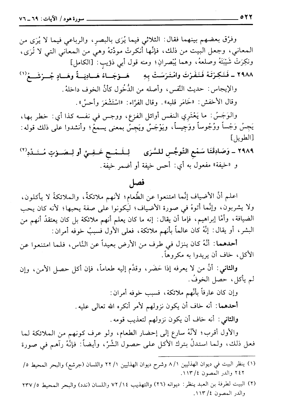 والأول أقرب؛ لأنَّهُ سارع إلى إحضار الطعام، ولو عرف كونهم من الملائكة لما فعل ذلك، ولما استدلَّ بترك الأكل على حصول الشَّرِّ، وأيضاً: فإنَّهُ رآهم في صورة