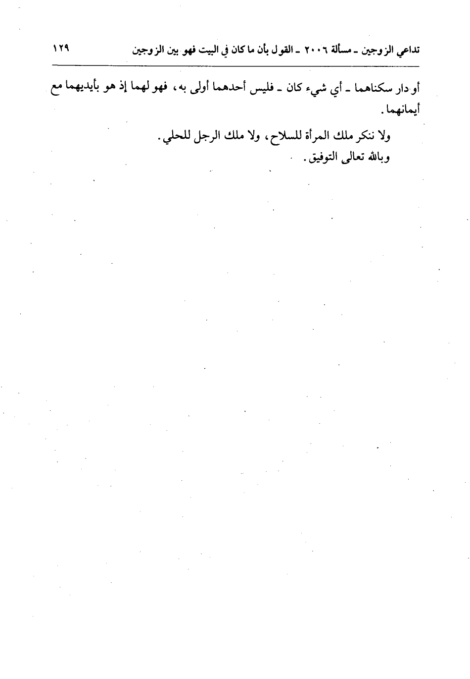 أَوْ دَارِ سُكْنَاهُمَا - أَيِّ شَيْءٍ كَانَ - فَلَيْسَ أَحَدُهُمَا أَوْلَى بِهِ، فَهُوَ لَهُمَا إذْ هُوَ بِأَيْدِيهِمَا مَعَ أَيْمَانِهِمَا.