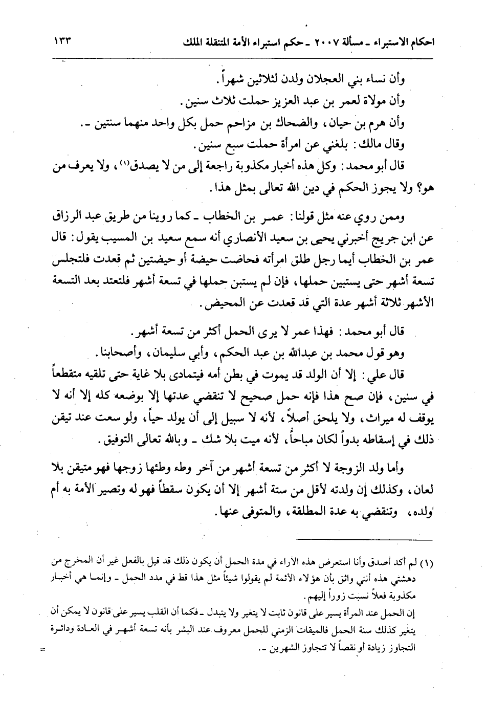 قَالَ أَبُو مُحَمَّدٍ: فَهَذَا عُمَرُ لَا يَرَى الْحَمْلَ أَكْثَرَ مِنْ تِسْعَةِ أَشْهُرٍ، وَهُوَ قَوْلُ مُحَمَّدِ بْنِ عَبْدِ اللَّهِ بْنِ عَبْدِ الْحَكَمِ، وَأَبِي سُلَيْمَانَ، وَأَصْحَابِنَا.