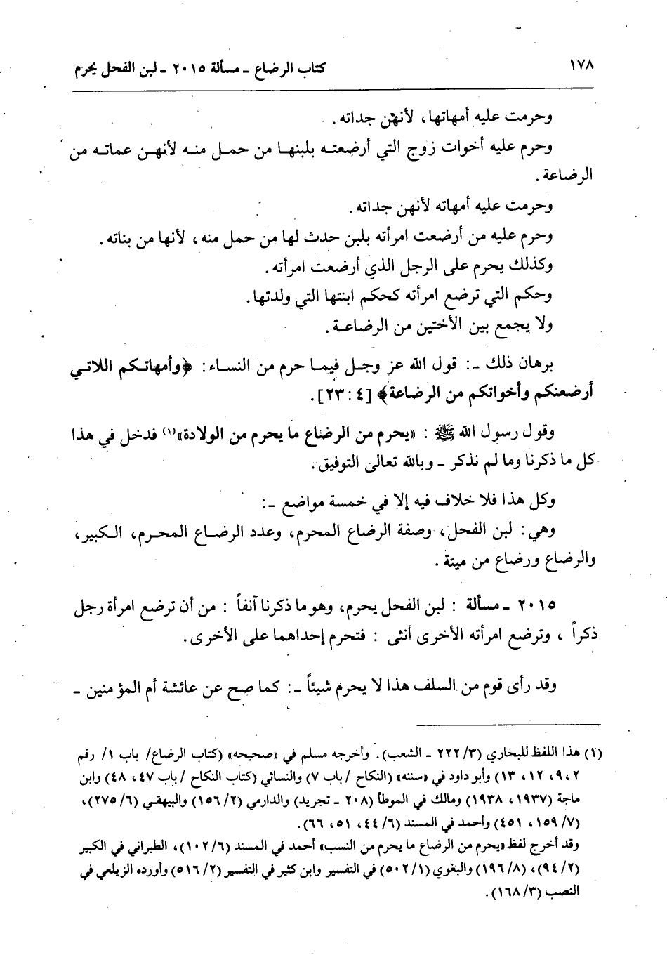 2015 - مَسْأَلَةٌ: لَبَنُ الْفَحْلِ يُحَرِّمُ، وَهُوَ مَا ذَكَرْنَا آنِفًا: مِنْ أَنْ تُرْضِعَ امْرَأَةُ رَجُلٍ ذَكَرًا، وَتُرْضِعَ امْرَأَتُهُ الْأُخْرَى أُنْثَى: فَتَحْرُمُ إحْدَاهُمَا عَلَى الْأُخْرَى.