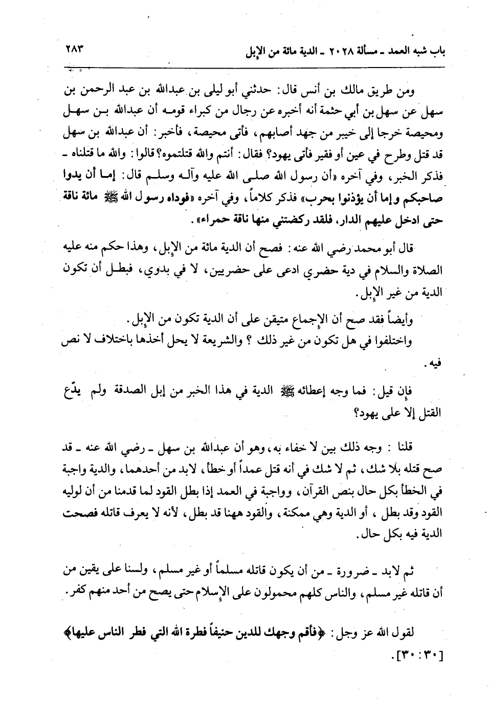 قَالَ أَبُو مُحَمَّدٍ - رَضِيَ اللَّهُ عَنْهُ -: فَصَحَّ أَنَّ الدِّيَةَ مِائَةٌ مِنْ الْإِبِلِ، وَهَذَا حُكْمٌ مِنْهُ - عَلَيْهِ الصَّلَاةُ وَالسَّلَامُ - فِي دِيَةِ حَضَرِيٍّ ادَّعَى عَلَى حَضَرِيِّينَ، لَا فِي بَدْوِيٍّ، فَبَطَلَ أَنْ تَكُونَ الدِّيَةُ مِنْ غَيْرِ الْإِبِلِ.