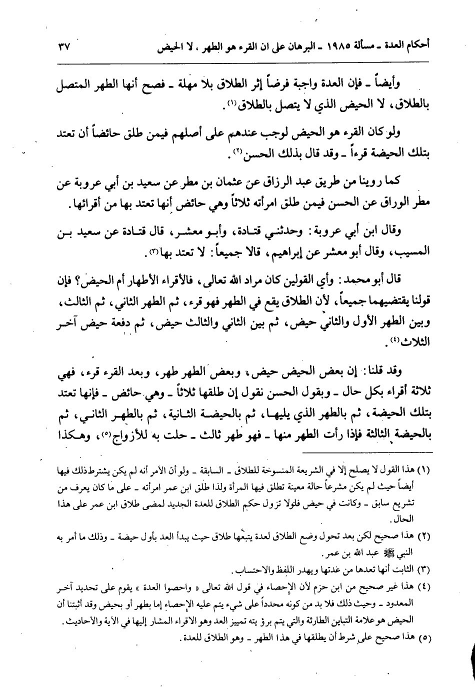 وَأَيْضًا - فَإِنَّ الْعِدَّةَ وَاجِبَةٌ فَرْضًا إثْرَ الطَّلَاقِ بِلَا مُهْلَةٍ - فَصَحَّ أَنَّهَا الطُّهْرُ الْمُتَّصِلُ بِالطَّلَاقِ، لَا الْحَيْضُ الَّذِي لَا يَتَّصِلُ بِالطَّلَاقِ.