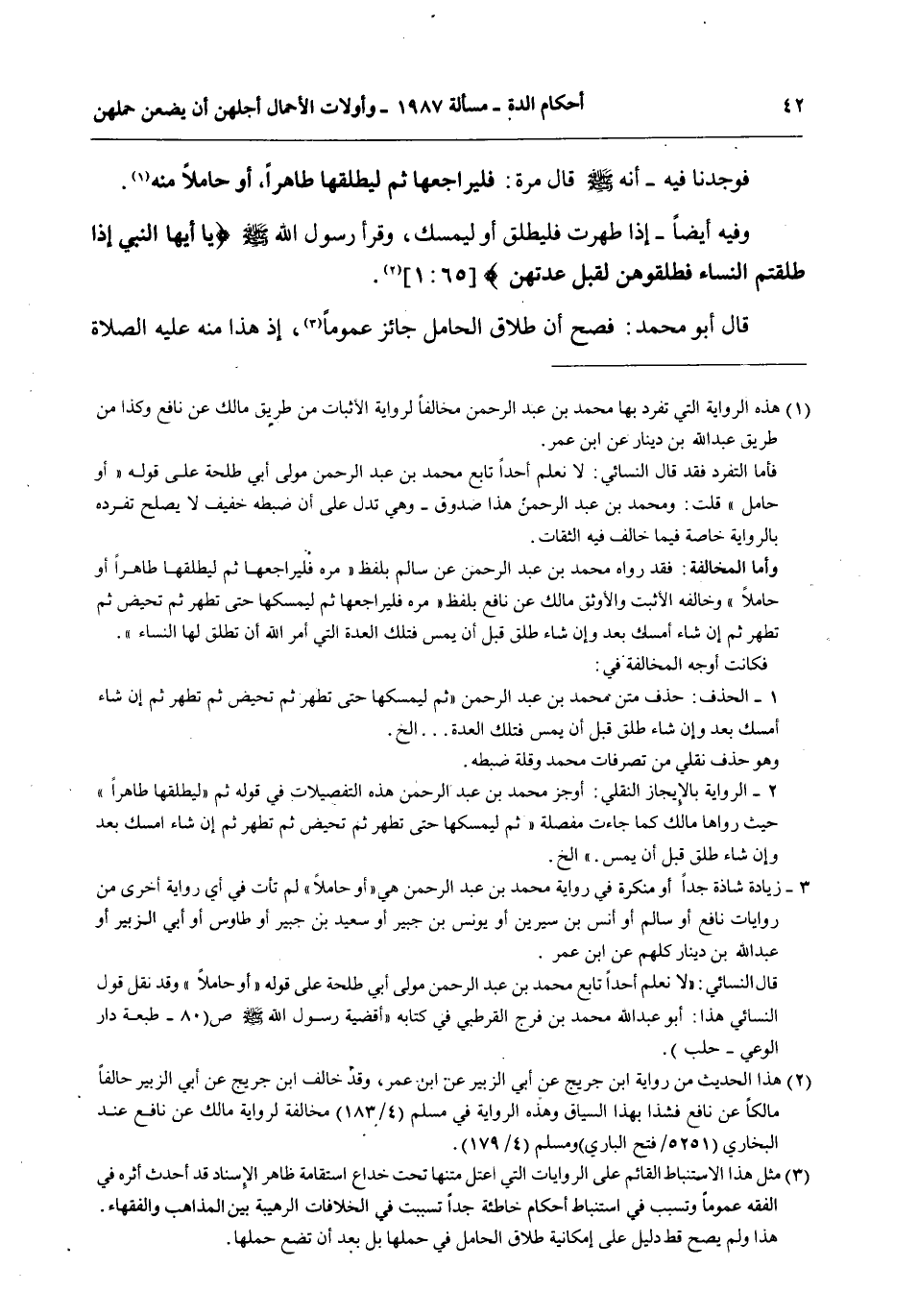 قَالَ أَبُو مُحَمَّدٍ: فَصَحَّ أَنَّ طَلَاقَ الْحَامِلِ جَائِزٌ عُمُومًا، إذْ هَذَا مِنْهُ - عَلَيْهِ الصَّلَاةُ وَالسَّلَامُ -
