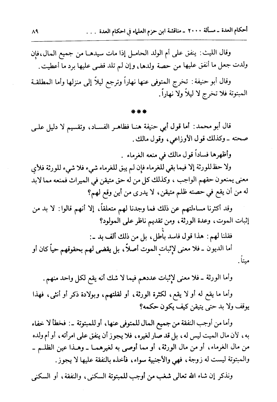 قَالَ أَبُو مُحَمَّدٍ: أَمَّا قَوْلُ أَبِي حَنِيفَةَ هُنَا فَظَاهِرُ الْفَسَادِ، وَتَقْسِيمٌ لَا دَلِيلَ عَلَى صِحَّتِهِ - كَذَلِكَ قَوْلُ الْأَوْزَاعِيِّ، وَقَوْلُ مَالِكٍ.