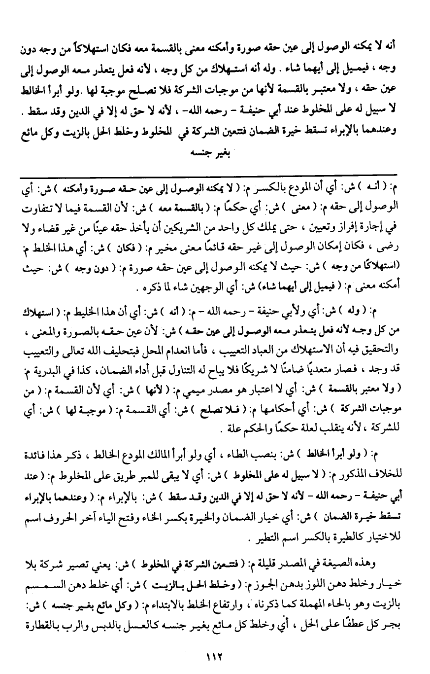 ـــــــــــــــــــــــــــــQم: (أنه) ش: أي أن المودع بالكسر م: (لا يمكنه الوصول إلى عين حقه صورة وأمكنه) ش: أي الوصول إلى حقه م: (معنى) ش: أي حكماً م: (بالقسمة معه) ش: لأن القسمة فيما لا تتفاوت في إجارة إفراز وتعيين، حتى يملك كل واحد من الشريكين أن يأخذ حقه عينًا من غير قضاء ولا رضا، فكان إمكان الوصول إلى غير حقه قائمًا معنى مخير م: (فكان) ش: أي هذا الخلط م: (استهلاكًا من وجه) ش: حيث لا يمكنه الوصول إلى عين حقه صورة م: (دون وجه) ش: حيث أمكنه معنى م: (فيميل إلى أيهما شاء) ش: أي الوجهين شاء لما ذكره.