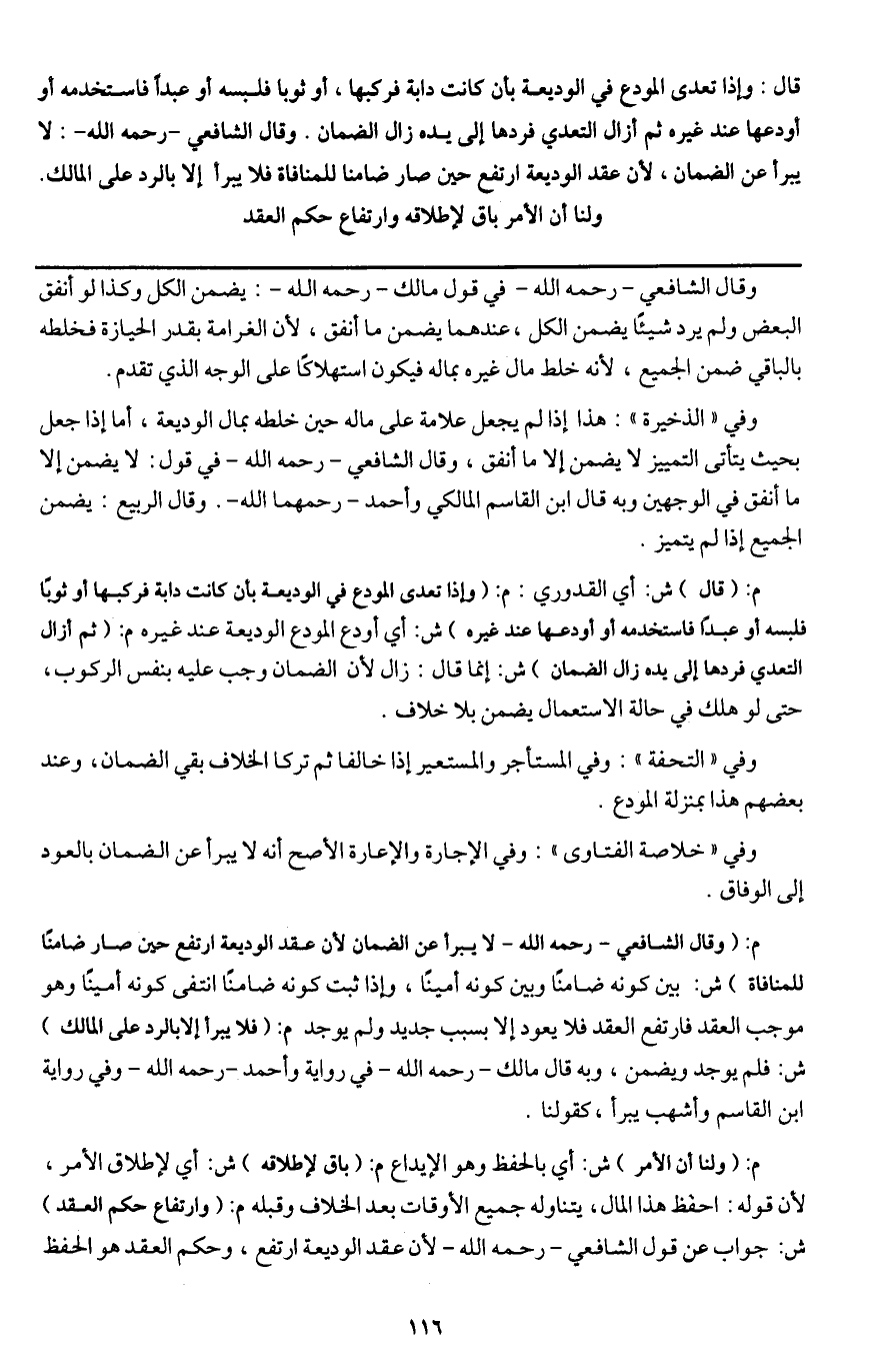 ـــــــــــــــــــــــــــــQوقال الشافعي - رَحِمَهُ اللَّهُ - في قول مالك - رَحِمَهُ اللَّهُ -: يضمن الكل وكذا لو أنفق البعض ولم يرد شيئًا يضمن الكل، عندهما يضمن ما أنفق، لأن الغرامة بقدر الحيازة فخلطه بالباقي ضمن الجميع، لأنه خلط مال غيره بماله فيكون استهلاكا على الوجه الذي تقدم.