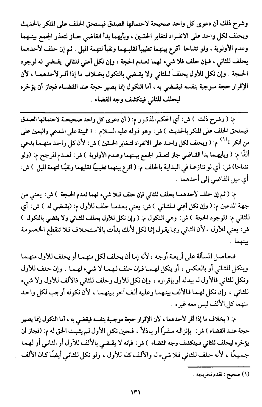 ـــــــــــــــــــــــــــــQم: (وشرح ذلك) ش: أي الحكم المذكور م: (أن دعوى كل واحد صحيحة لاحتمالها الصدق فيستحق الحلف على المنكر بالحديث) ش: وهو قوله - عَلَيْهِ السَّلَامُ -: «البينة على المدعي واليمين على من أنكر» م: (ويحلف لكل واحد على الانفراد لتغاير الحقين) ش: لأن كل واحد منهما يدعي ألفًا م: (وبأيهما بدأ القاضي جاز لتعذر الجمع بينهما وعدم الأولوية) ش: لعدم المرجع.